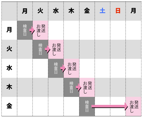 最短で翌診療日の16:00~18:00になります(土日祝は休業です)。